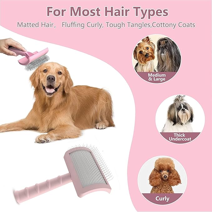 - 🐶🐱【Choose the Right Dog&Cat Hair Brush】For long haired or double haired dogs, this large long pin slicker brush can remove dead hair from underneath and stimulate new hair growth, and the grooming brush makes it easier for the penetrate the surface of the skin when taking a shower. Dogs&cats often have hair loss problems, use the slicker brush every day can keep their hair from flying around.