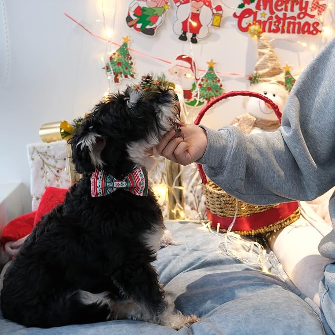 • Good Material: The Christmas dog collar is made of 100% cotton, which is a kind of light and breathable dog collar bow fabric. The plaid dog collar provides the dog a comfortable experience.