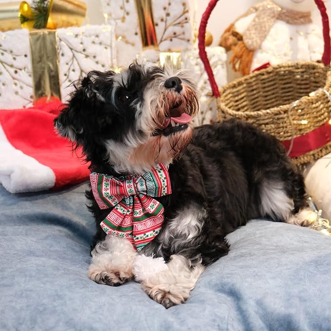 MR. CHUBBYFACE Christmas Plaid Dog Collar for Boy Girl Dogs Adjustable Red Green Dog Collar Sailor Bow tie for Small Medium Large Dogs