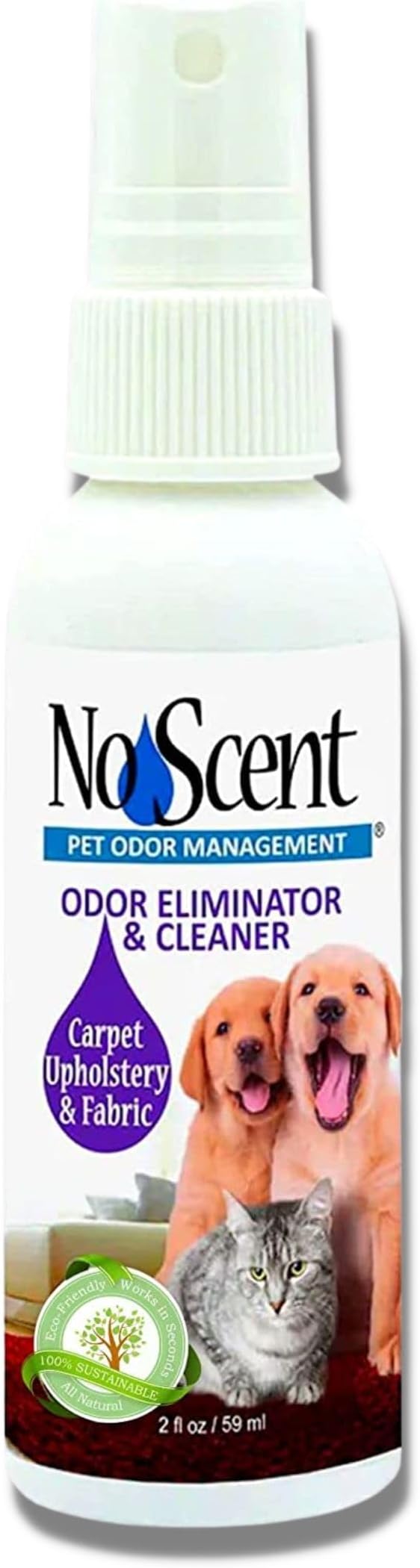 No Scent Carpet Upholstery & Fabric Furniture Spray Spot Cleaner for Wet Dog Smell, Cat Spray, Pet Odor, Urine, Poop & Secretions (2 Fl Oz / 59 mL)