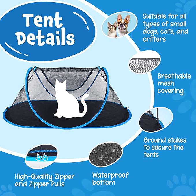- Designed for Functionality — Give a tug on the blue paw print zipper pulls to let your pets in and out of this outside cat tent through the easy-access extra-wide zipper opening. Don't worry about accidents. The waterproof bottom layer of the animal play house makes for easy clean up