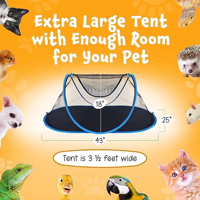 - A Breath of Fresh Air — Don't keep your pet cooped up inside. Let them enjoy some much needed outdoor time with this pop up pet tent. Provide protection from pests while allowing your pets to safely enjoy the open air with this breathable mesh outdoor pet tent