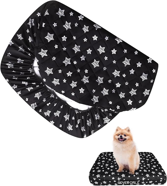 Dog Bed Covers Replacement Washable Pet Hair Easy to Remove, Waterproof Dog Bed Covers Noiseless Quilted, Pet Bed Cover Lovely Black Star Print, Puppy Bed Cover 16x25 Inches, for Dog/Cat, Cover Only