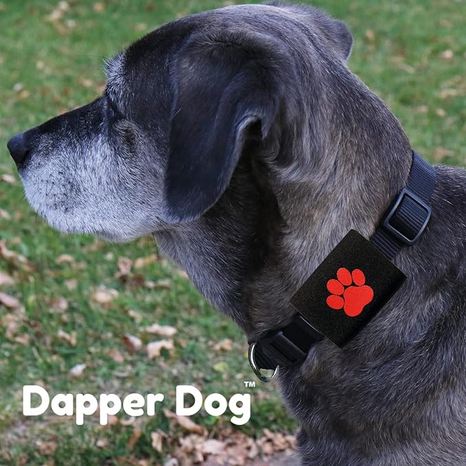 Dapper Dog Pet Tag Silencer and AirTag Holder (Black with Red Paw)