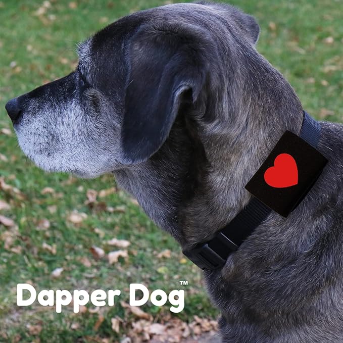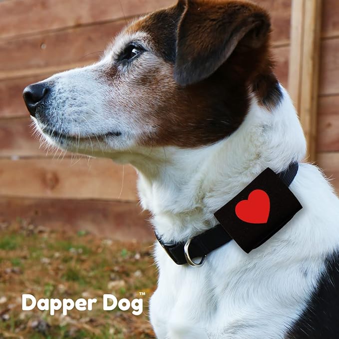 Dapper Dog Pet Tag Silencer and AirTag Holder (Black with Red Heart)