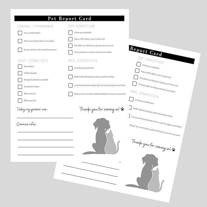 - Design is a white paper with black text and accents to match with any groomer's decor!