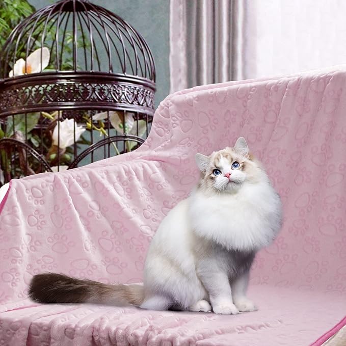 Stuffed Premium Soft Cat Blanket, Flannel Pink Stuff Cute Paw Print, 32 * 40 inches, Dog Blanket Puppy Supplies Dog Products Stuff Essentials, Christmas Cat Gifts