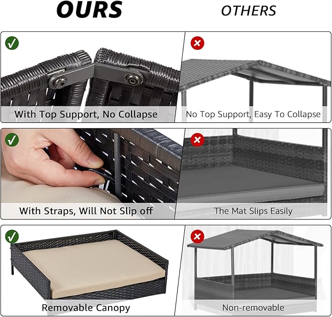 - STURDY AND CONSTRUCTION - Made of high quality rattan, which is waterproof, breathable and chew resistant, our elevated dog house will stay with your pet for a longer time. The dog house is made up of a heavy-duty steel frame that makes the dog house less likely to shake. It also features an elevated bottom for good ventilation.