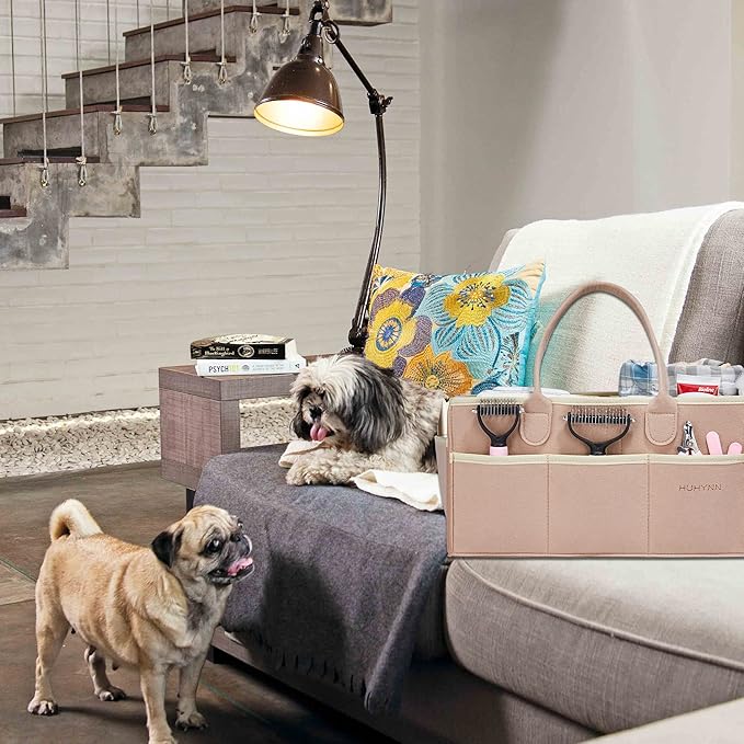 - 【PREMIUM QUALITY】 The portable pet grooming tote is made of high quality felt material with enhanced stitching, which ensure long term use. Besides, this dog grooming storage bag has its sturdy handles, convenient to carry it for outdoor.