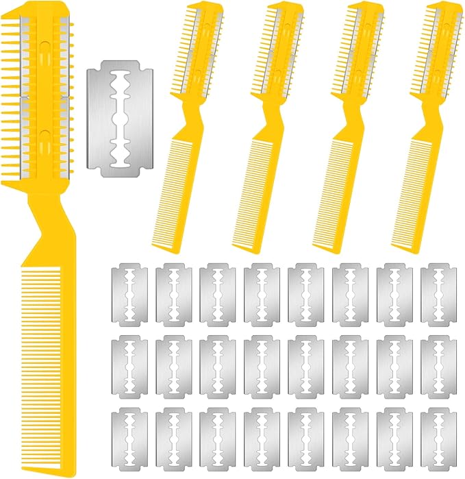 Yinkin 5 Pieces Razor Comb for Dogs Hair Grooming Trimmer for Pet Razor Comb with 25 Extra Blades Manual Dog Hair Trimmer Double Edge for Cats Hair Cutting Tool(Yellow)