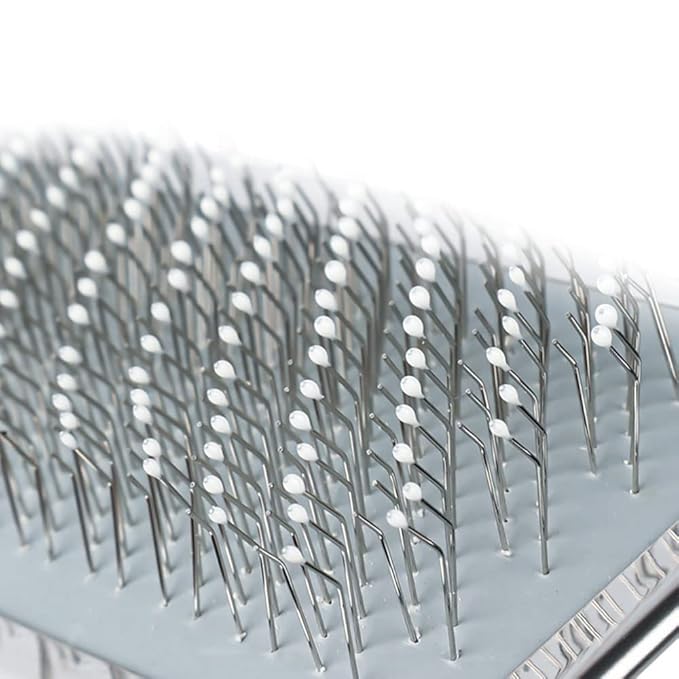 - 【ANTI SCRATCH DESIGN】- The wide-head pet combs won't scratch your dog or cat. The angled pins penetrate deep into the undercoat fur to clear away shedding hair, dander, and dirt. The bristles are long and densely packed, but with softer tips that massage your pet instead of scratching them.