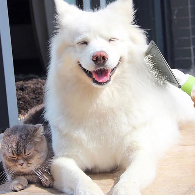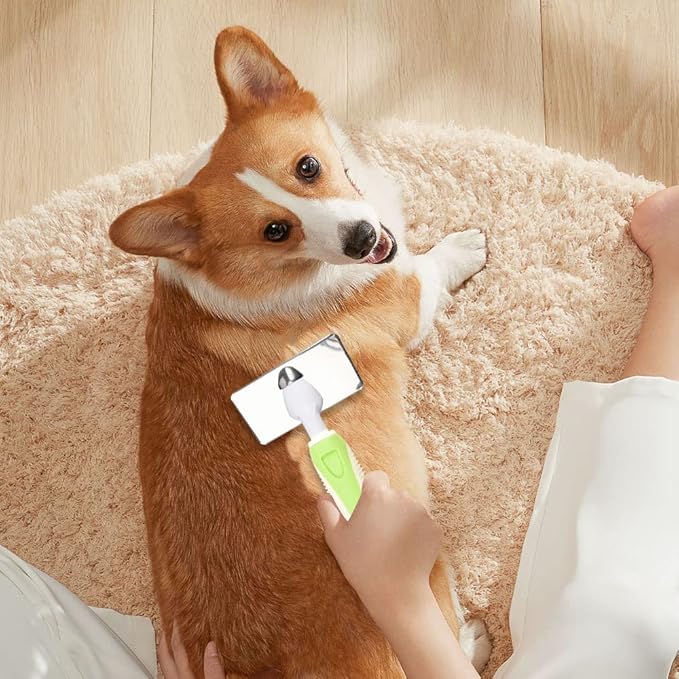 The pet grooming brush works wonders on my golden retriever’s thick coat. It removes loose fur effortlessly and my dog actually enjoys being brushed now.