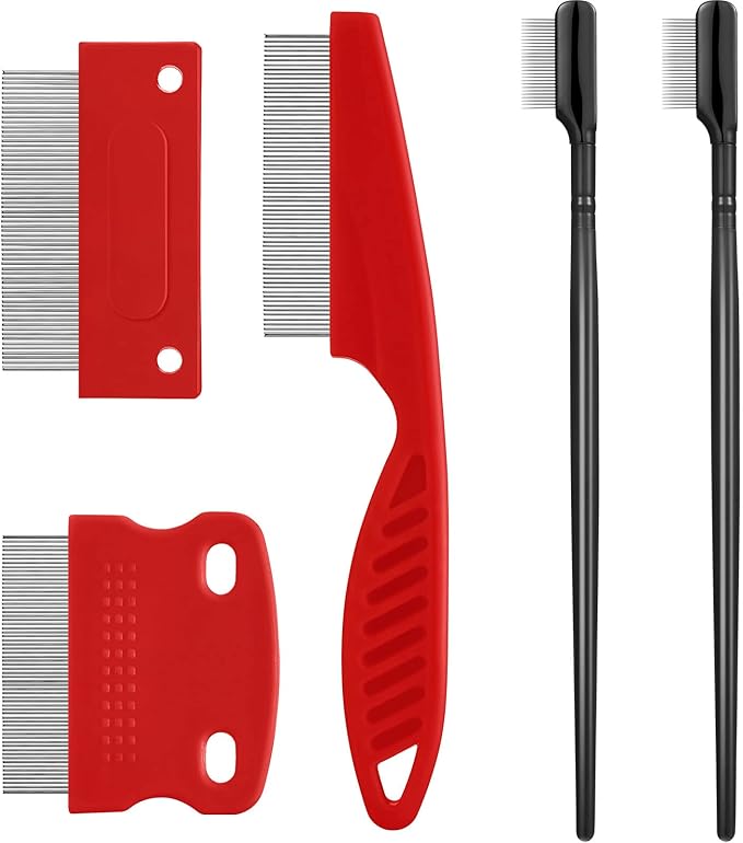 5 Pieces Dog Eye Combs Tear Stain Remover Combs Pet Grooming Comb for Small Dogs Gently Removing Eye Mucus and Crust (Red, Black)