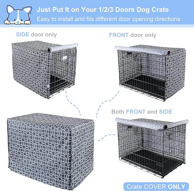 - Only Cover, without Crate - Dimension: 42 x 28 x 30 inches, universal fit for most brand 42-inch standard wire crate. Compatible with 1-door, 2-door, and 3-door wire dog crates.