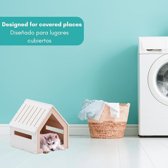 - VENTILATION INCLUDED: gabled roof with holes for ventilation and lighting. The house features slits on two sides that serve as ventilation holes, as well as light windows, making the interior space well-ventilated and illuminated. In addition, the slots allow the pet to observe what is happening around him from his hiding place.