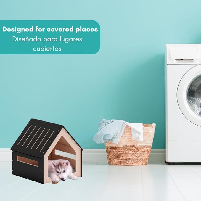 Medium House for Pets, Wooden House for Pets for Interiors, Resistant Wood with Cushion for Dog Included, Minimalist, Elegant and Resistant, 18x18x18 in, Black