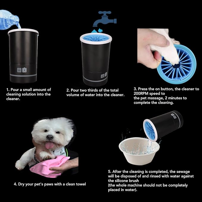 - 【Easy to Use and Clean】: Simply pour two thirds of the total volume of the cleaner with water and cleaning solution into the cleaner and release your pet's paws. Turn on the cleaner and it will automatically clean the clay paws.giving your puppy's chubby paws a gentle care without injury and helping to relax the paw muscles.