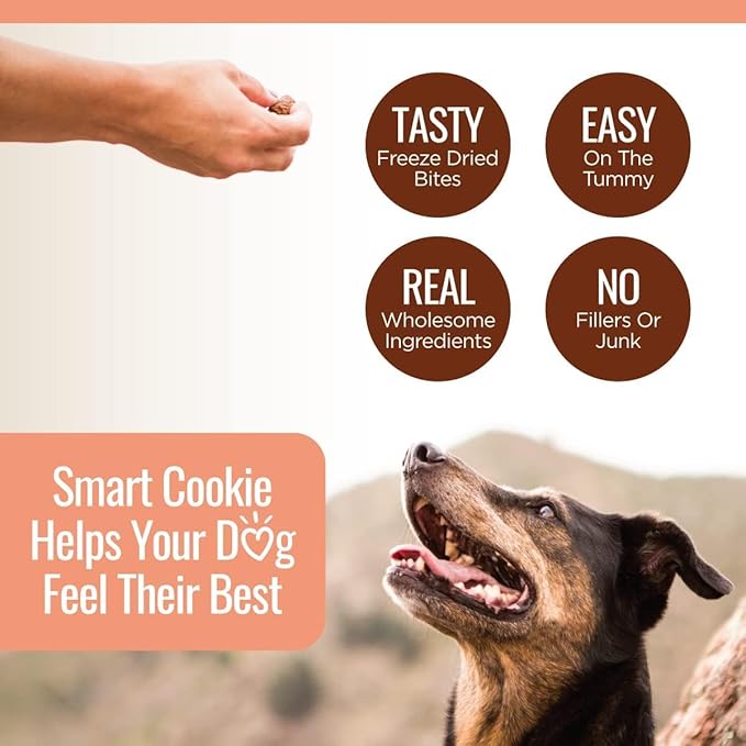 - WORRY FREE REWARD: Spoil your furry friend to something special with Smart Cookie’s Freeze Dried Salmon Bites! These freeze dried fish dog treats are packed with flavor and nutrition, making them ideal as an everyday treat, puppy training treats or as a dog food topper