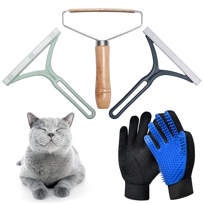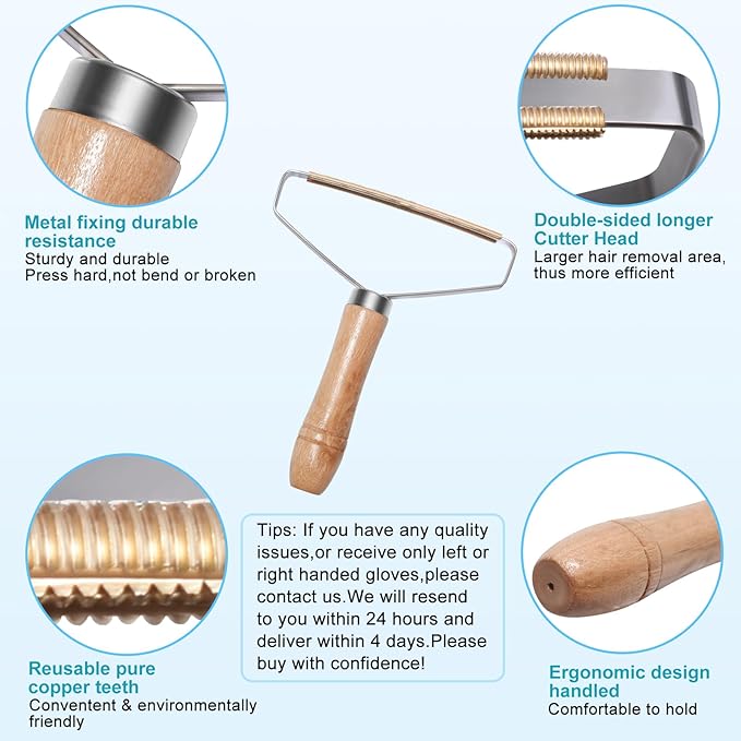 - Upgraded Combination and Widely Use:Copper pet hair remover be used for thick piled item and sheavy duty, such as winter coats,carpet,furniture, ar car interiors, and etc;Plastic fabric shaver can be used for soft and thin fabrics, such as pet,bed sheet,sweatshirt,velvet,and etc;Gloves can provide a soft and relaxing massage
