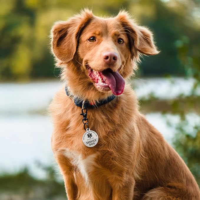 MYLUCKYTAG Service Dog Tag, QR Code Stainless Steel Pet ID Tag Dog Tag, Online Pet Profile, Pet Location Alert Email, Digital Pet Tag, Durable Pet ID, Dog Collar Tag, Engraved Pet Tag