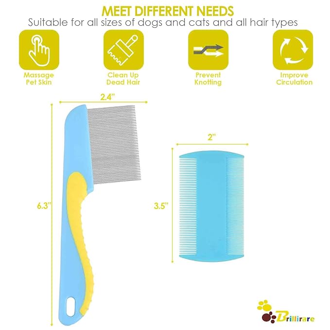 - 【THOUGHTFUL SET】Our pet grooming set includes 2 extra long-toothed combs and 2 double sides lice combs to meet different needs. Perfect for straightening out the knotted tangles hair, removing tear stain, mats, and more, as well as finishing and fluffing, easy to clean by just rinsing & keep your furry friend looking fabulous.