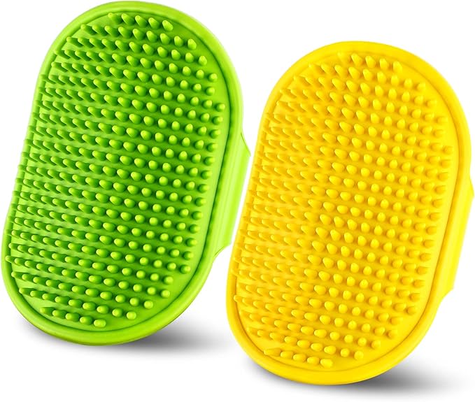 Dog Bath Brush | Dog Grooming Brush, Dog Shampoo Massage Bath Brush Comb with Adjustable Loop Handle for Grooming Short and Long Hair Cats and Dogs, 2pcs(Tapered Brush Head, Yellow + Green)