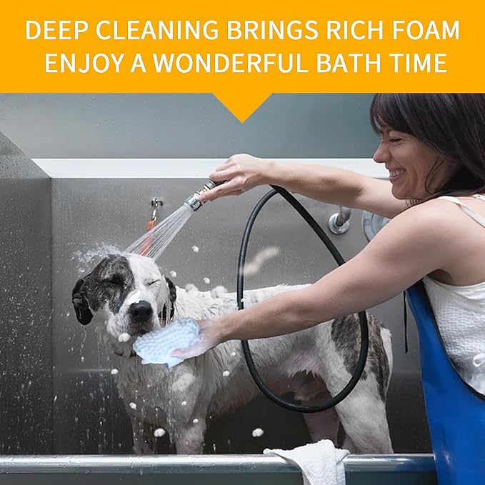 - 【EFFECTIVE MASSAGE】: This dog shampoo brush has a great lathering effect, creating a large amount of foam to deeply clean your pet's deep coat and remove loose hair and dead skin. It can also provide a soothing massage during dry brushing or bathing, promoting a healthy coat. The dog shampoo brush is an essential tool for effective pet grooming