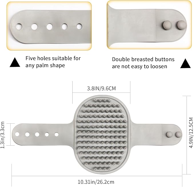 - 【EXCELLENT DESIGN】: The dog bathing brush has an adjustable loop handle for a comfortable grip that fits perfectly in the palm of your hand. With a product size of 9.8*4.8*0.7 and a weight of 85 g, it is perfect for controlling during a long pet grooming session. This makes it a favorite among dog shampoo brushes