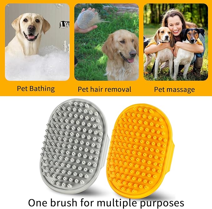 Dog Bath Brush | Dog Grooming Brush, Dog Shampoo Massage Bath Brush Comb with Adjustable Loop Handle for Grooming Short and Long Hair Cats and Dogs, 2pcs(Plum Brush Head, Orange + Grey)