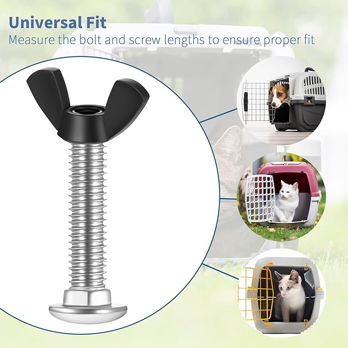 - Universal Fit: the product is designed to be universally compatible with all pet crate and kennel brands, making it a versatile replacement bolts solution; However, it is important to measure the bolt and screw lengths to ensure proper fit