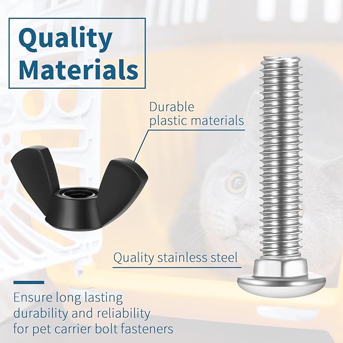 - Quality Materials: the product is made from quality stainless steel and durable plastic materials that ensure long lasting durability and reliability for pet carrier bolt fasteners