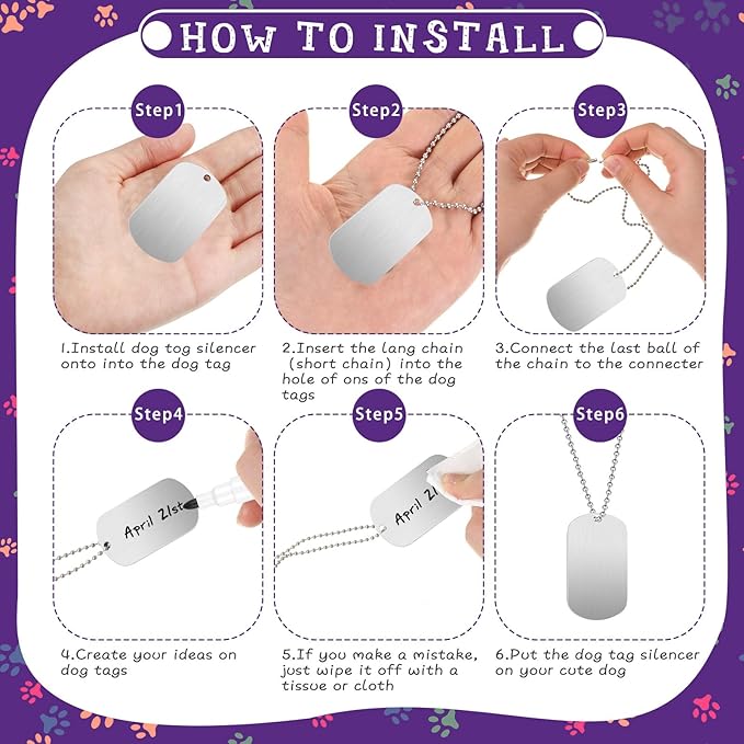 - Complete Set: the package contains 30 pieces of aluminum alloy blank dog tags, 30 pieces of 24 inch dog tag chains and 2 erasable black marker pens, which can be DIY designed into 30 different dog tag necklaces, share with your relatives and friend
