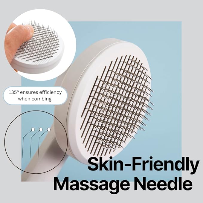 - 🐾 Skin-friendly Massage Needles - The bristles have round rubber tips made for short-haired dogs and cats. The 150° bent design makes the tips easily penetrate deep into the coat, effectively grooming the undercoat. The cat deshedding brush is perfect for shedding, massaging, and cleaning your pet while providing gentle massaging without compromising your pet's sensitive skin.