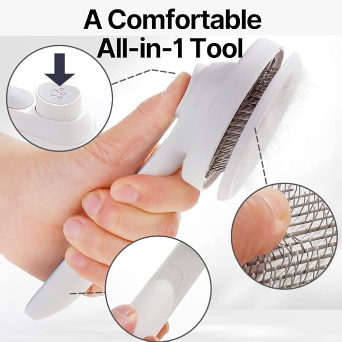 - 🐾 One-Click Cleaning Button - After brushing your pet, a simple click of the button on the ergonomic cat slicker brush features an easy-release one-click button for hair removal. The button for the dog shedding brush saves you time and energy during grooming sessions.