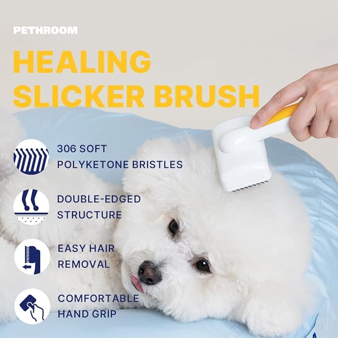 [PETHROOM] Slicker Brush for Gentle Grooming - Detangling Brush for Dogs and Cats with Coated Tips, Ideal for Goldendoodles, Long or Curly Coats, and Shedding Control