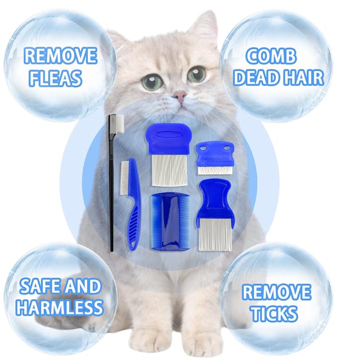 - Wide Usage: The pet grooming comb kits comes with 6 different flea brushes that are perfect for different kinds of pets such as dogs, cats, rabbits and other furry pets; whether they have long or short hair. Use this dog and cat flea comb to keep your pet happy and healthy!