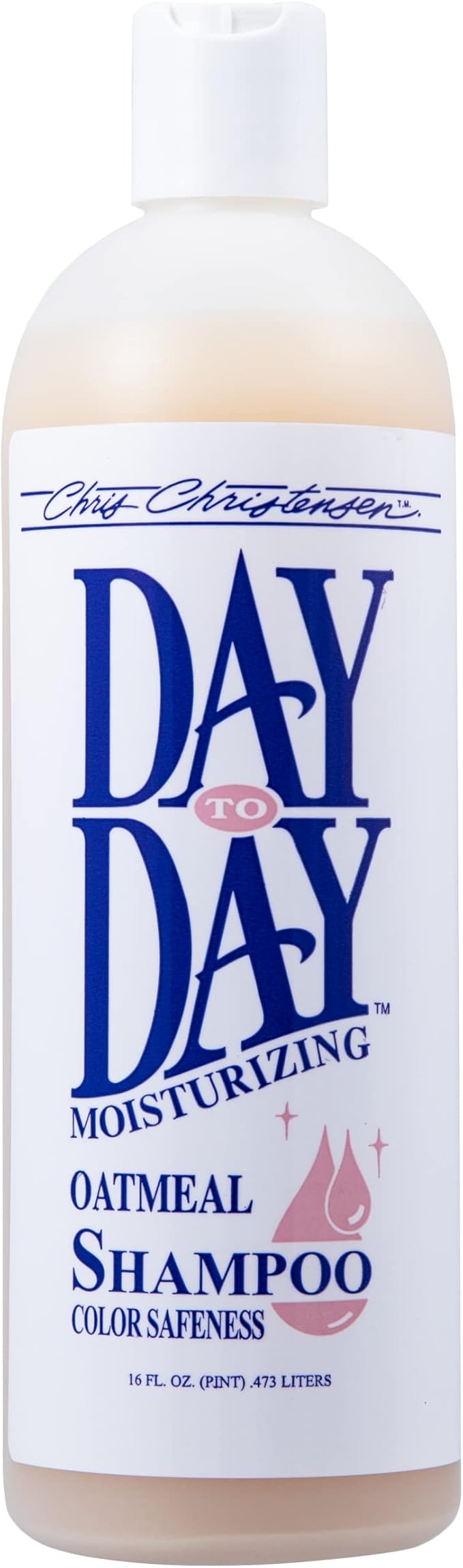 - SHAMPOO CONCENTRATE - Chris Christensen Day to Day Shampoo is a mild formula enriched with Vitamin E, Colloidal Oatmeal and natural botanical extracts to gently clean and restore the coat and skins natural moisture while adding body and sheen.