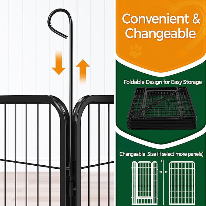 - Larger Playpen Available: Each panel measures 28″ W × 47.5″ H. Eight pet playpens can be connected to a larger enclosure space that allows your pets to rest and play without worrying about them running off. You can buy more sets to increase the size of the playpen