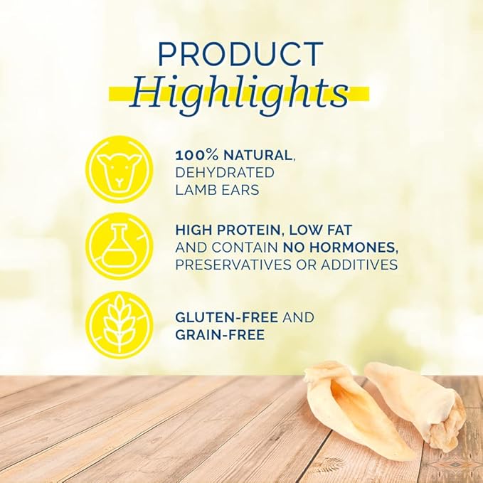 - Natural dog treat: dehydrated lamb ears packed with raw flavor and textures