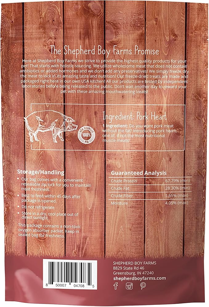 Freeze Dried Dog and Cat Treats, Pork Heart, All Natural Single Ingredient Freeze-Dried Dog Treat & Dog Snacks, Made in USA, High Protein, Essential Nutrition of Raw Dog Food, 8oz