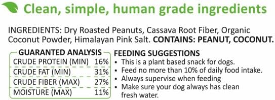 - SIMPLE, WHOLESOME INGREDIENTS - our protein bars for dogs are made with easy-to-pronounce ingredients such as Dry Roasted Peanuts, Cassava Root Fiber, Organic Coconut Powder, and Organic Sweet Potato Powder. We prioritize minimally processed, sustainably sourced ingredients to create healthy and tasty dog treats
