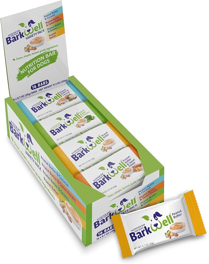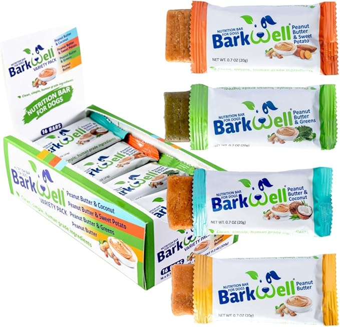 - HEALTHY DOG TREATS FOR ALL AGES - BarkWell Protein Bars are healthy dog treats perfect for dogs and puppies of all ages. Each 0.7-ounce bar is packed with essential nutrients and protein, making them ideal doggie treats for your furry friend. Our natural dog treats are free from harmful additives, ensuring your pet gets only the best from their treats