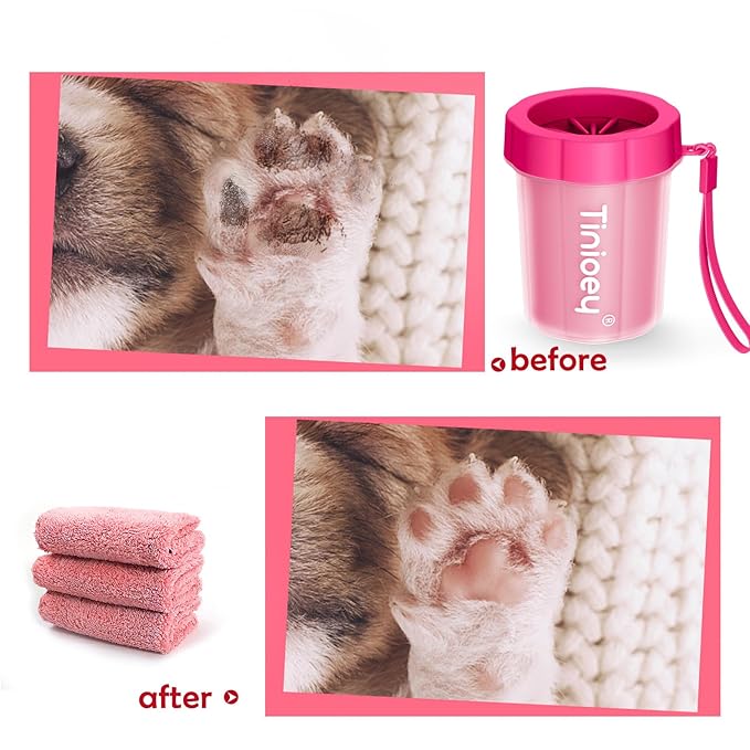 - 【Gift 3 Absorbent towels】 Use Tinioey dog foot washer to clean dog paws, just put the muddy paw into the cup and twist a few turns. Comes with towels for drying puppy paw, Want to free your hands? Just order it