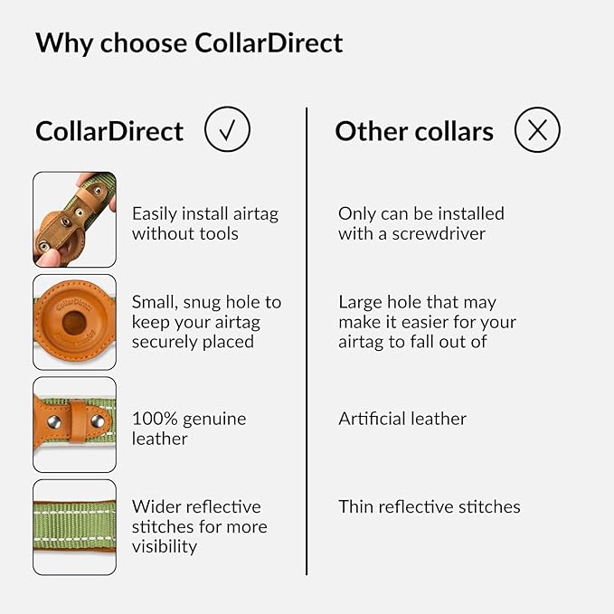 - Designed for the Apple AirTag - This dog tracking collar was designed to fit the Apple AirTag. Our airtag dog collar has a double snap and small opening to ensure your airtag's placement. Plus, the air tag collar has reflective stitching for nighttime walks.
