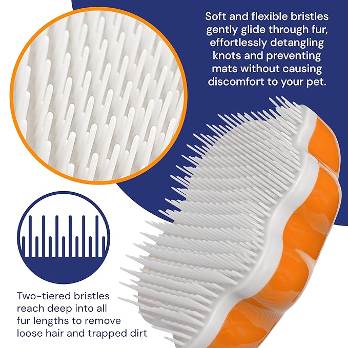 - Its unique bristle design and pattern calms pets while it gently unravels knots in hair and fur.