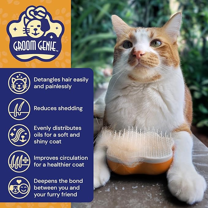 - Each penetrating stroke of the Groom Genie helps to evenly pull natural oils through hair and fur for healthy skin and coat.