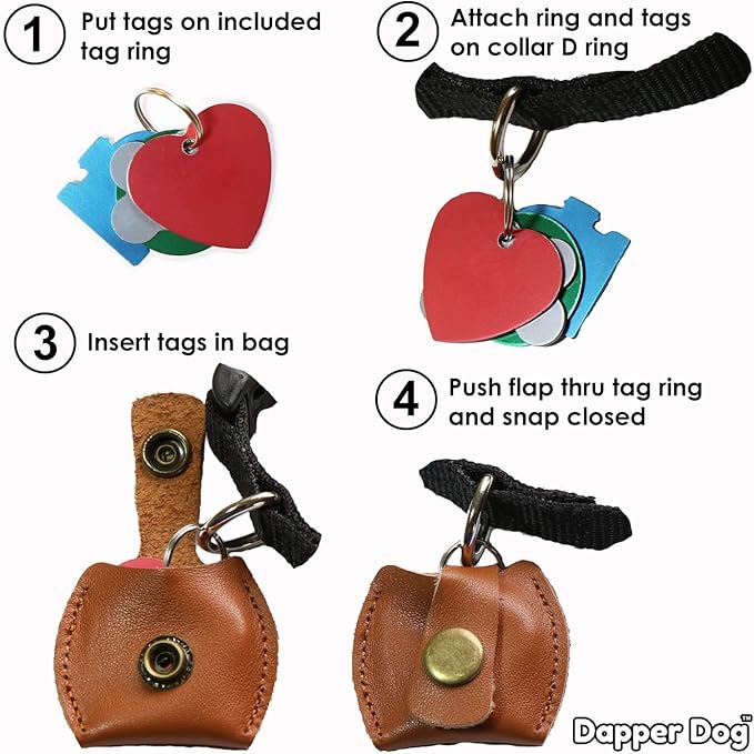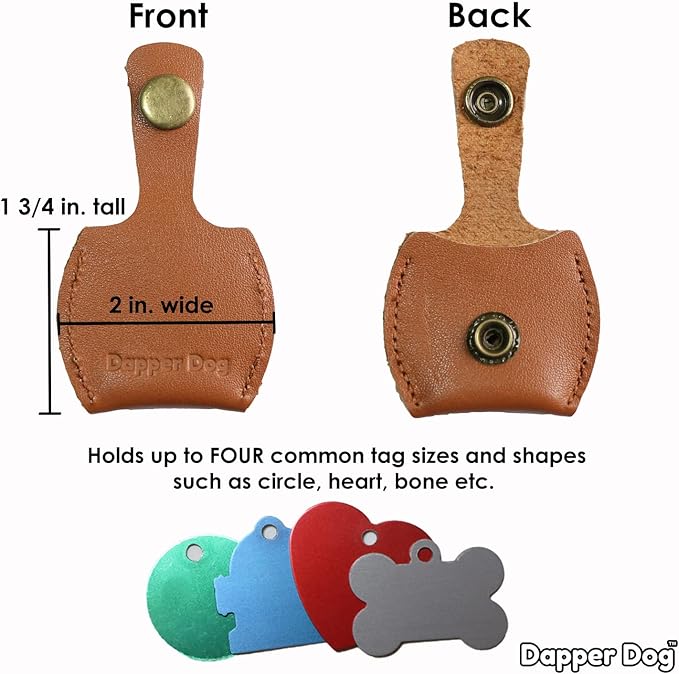- Holds up to four standard size and shape tags, for example; bone, heart, circle, square. Bag is 2 inches wide and 1 3/4 inch tall. Please measure your tags before purchasing as the bag may not hold all tags.