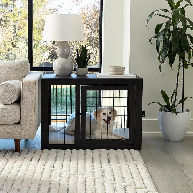 - MODERN DÉCOR - This dog kennel features a wide top, perfect for home decor, lamps, framed pictures, plants, and more while your pet rests comfortably underneath. The modern dog crate blends seamlessly in with your existing décor for a cohesive look.