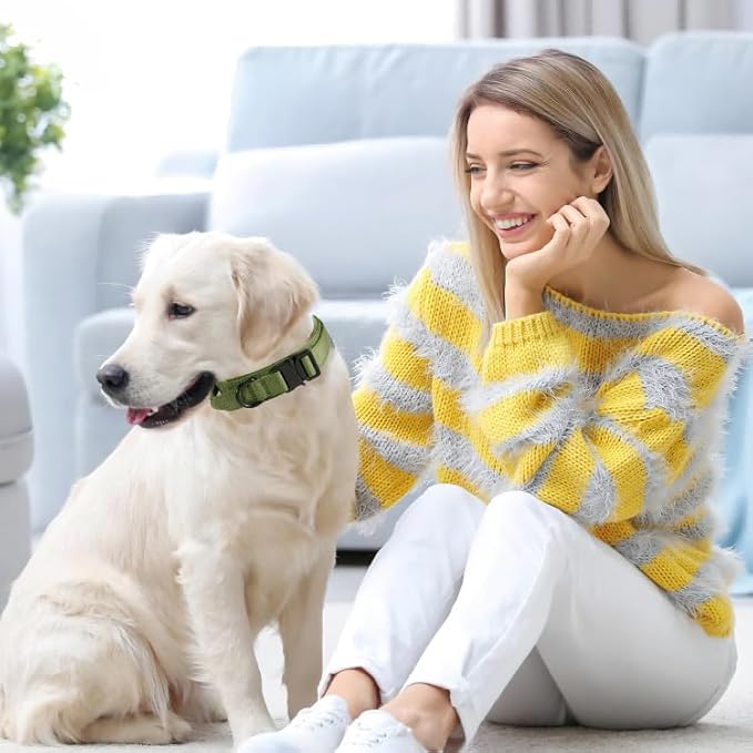 Tactical Dog Collar with Handle, Heavy Duty Military Dog Collar with Heavy Metal Buckle for Training, Adjustable Tactical Collars for for Medium and Large Dogs (M, Green)