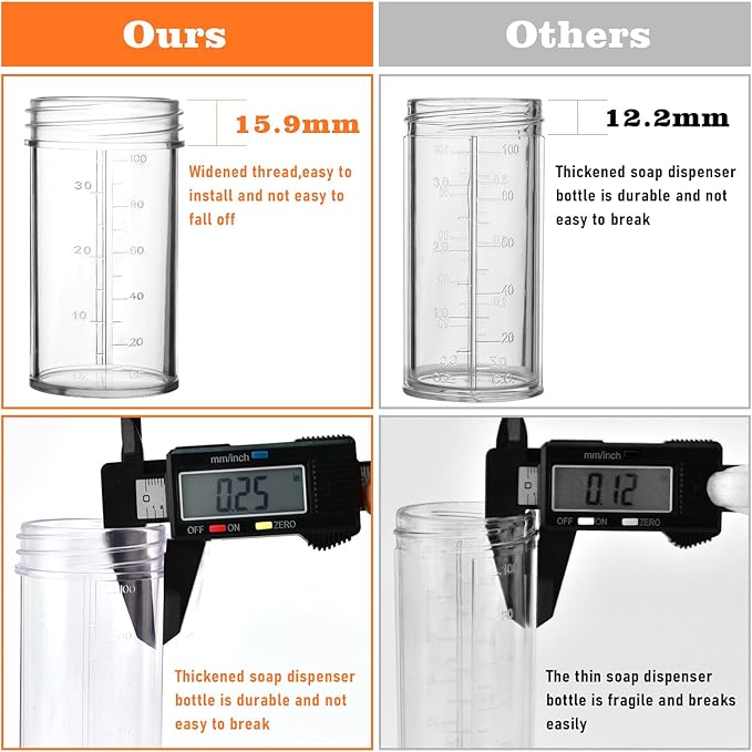 - Upgrade Soap Dispenser Bottle:Compared to others, our soap dispenser bottles are twice as thick as they are. The thicker soap bottle is durable and not easy to break. Soap bottle and foam gun connection where we increased the width of the thread, easy to install and not easy to fall off. Tips: YCCOKJJ store sells the adapter separately, if you want to use it in indoor shower, you can purchase the foam gun and adapter together.